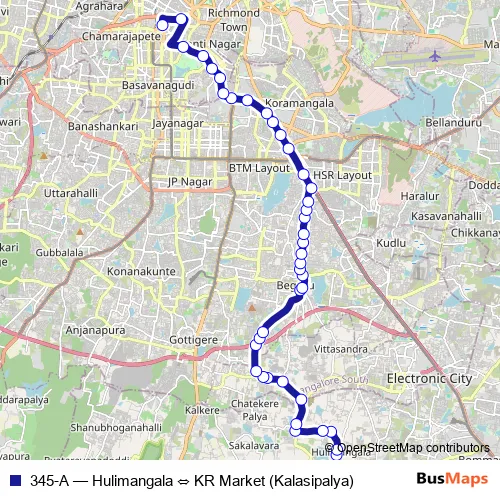 Bus 345-A - Hulimangala ⇔ KR Market (Kalasipalya) in Bengaluru: Stops & Timetable