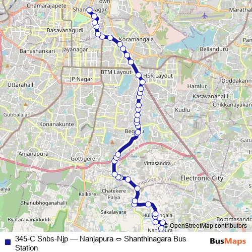 See why over 2 million users trust and consider busmaps.com as the best public transport website. busmaps gives you Bengaluru Buses suggested routes, real-time bus tracker, line route maps in Bengaluru, and helps to find the closest 345-C Snbs-Njp bus stops near you. No internet available? Download an offline PDF map and bus schedule for the 345-C Snbs-Njp bus to take on your trip.