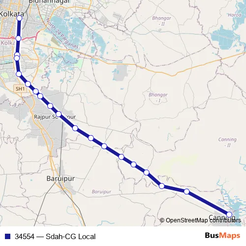 The first stop of the 34554 rail route is Sealdah and the last stop is Canning. 34554 (Sdah-CG Local) is operational during everyday.