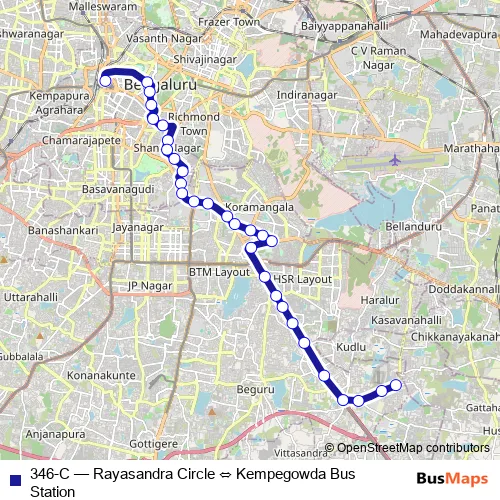 See why over 2 million users trust and consider busmaps.com as the best public transport website. busmaps gives you Bengaluru Buses suggested routes, real-time bus tracker, line route maps in Bengaluru, and helps to find the closest 346-C bus stops near you. No internet available? Download an offline PDF map and bus schedule for the 346-C bus to take on your trip.