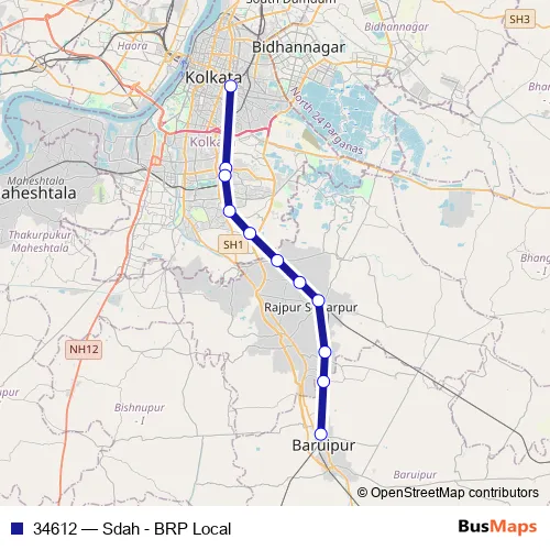 The first stop of the 34612 rail route is Sealdah and the last stop is Baruipur Jn.. 34612 (Sdah - BRP Local) is operational during everyday.