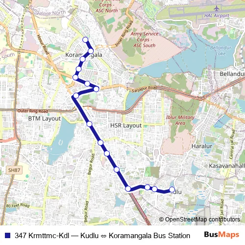 Bus 347 Krmttmc-Kdl - Kudlu ⇔ Koramangala Bus Station: Full Schedule in Bengaluru