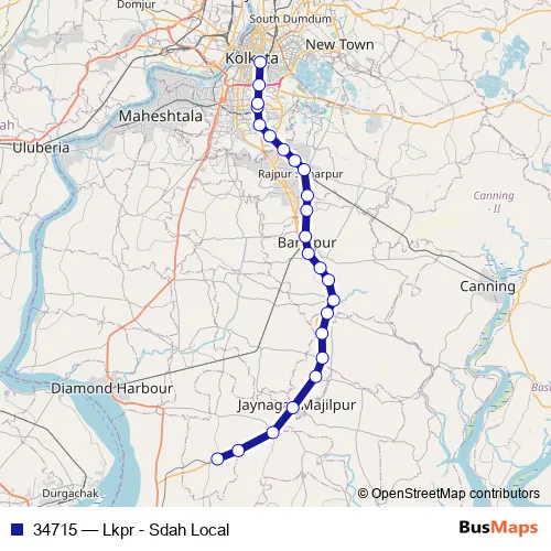 The first stop of the 34715 rail route is Lakshmikantpur and the last stop is Sealdah. 34715 (Lkpr - Sdah Local) is operational during everyday.