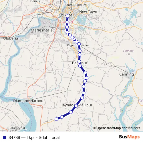 The first stop of the 34739 rail route is Lakshmikantpur and the last stop is Sealdah. 34739 (Lkpr - Sdah Local) is operational during everyday.
