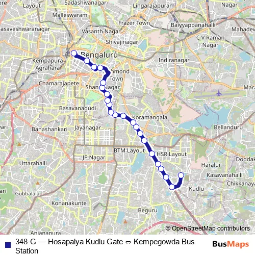 The first stop of the 348-G bus route is Hosapalya Kudlu Gate and the last stop is Kempegowda Bus Station. 348-G (Hosapalya Kudlu Gate ⇔ Kempegowda Bus Station) is operational during everyday.