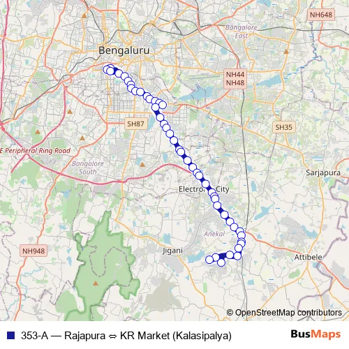 See why over 2 million users trust and consider busmaps.com as the best public transport website. busmaps gives you Bengaluru Buses suggested routes, real-time bus tracker, line route maps in Bengaluru, and helps to find the closest 353-A bus stops near you. No internet available? Download an offline PDF map and bus schedule for the 353-A bus to take on your trip.