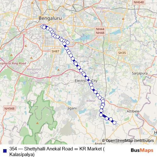 Bus 354 - Shettyhalli Anekal Road ⇔ KR Market (Kalasipalya) in Bengaluru: Stops & Timetable