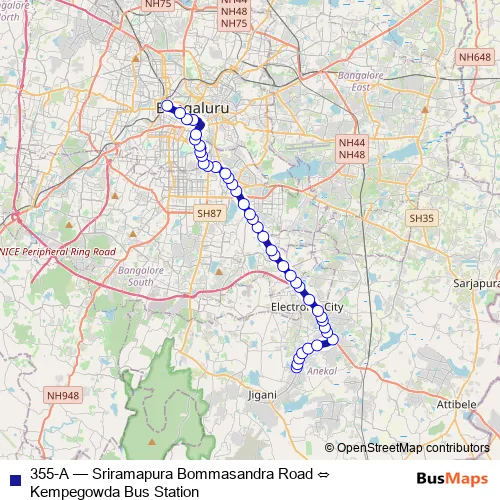 See why over 2 million users trust and consider busmaps.com as the best public transport website. busmaps gives you Bengaluru Buses suggested routes, real-time bus tracker, line route maps in Bengaluru, and helps to find the closest 355-A bus stops near you. No internet available? Download an offline PDF map and bus schedule for the 355-A bus to take on your trip.