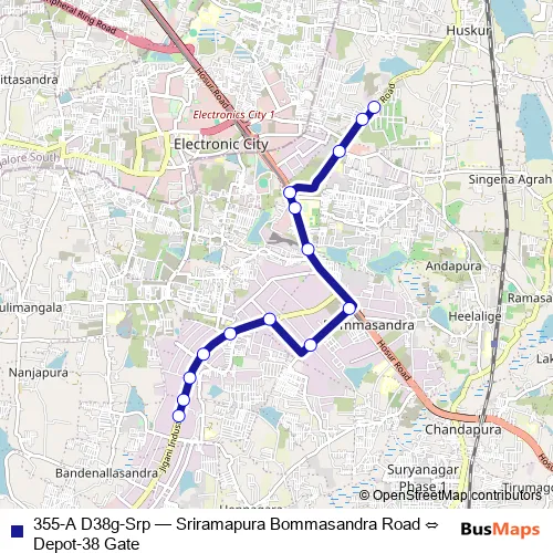 Bus 355-A D38g-Srp - Sriramapura Bommasandra Road ⇔ Depot-38 Gate Schedule in Bengaluru