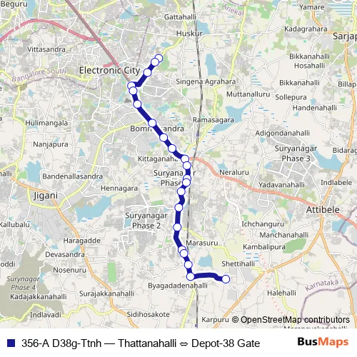 See why over 2 million users trust and consider busmaps.com as the best public transport website. busmaps gives you Bengaluru Buses suggested routes, real-time bus tracker, line route maps in Bengaluru, and helps to find the closest 356-A D38g-Ttnh bus stops near you. No internet available? Download an offline PDF map and bus schedule for the 356-A D38g-Ttnh bus to take on your trip.