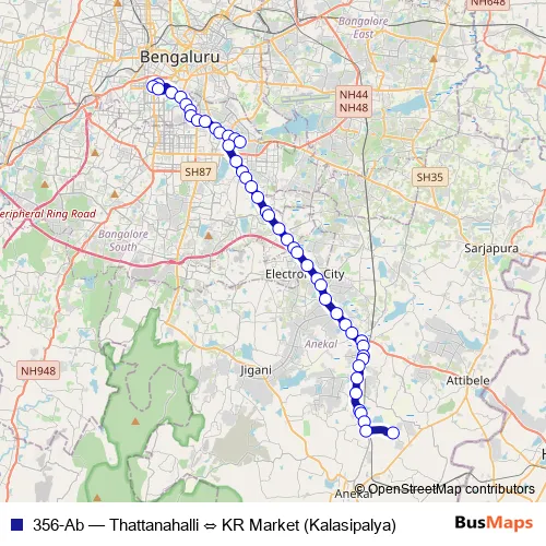 Bus 356-Ab - Thattanahalli ⇔ KR Market (Kalasipalya): Full Schedule in Bengaluru
