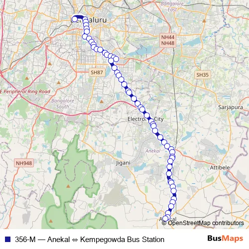 Bus 356-M - Anekal ⇔ Kempegowda Bus Station in Bengaluru: Stops & Timetable