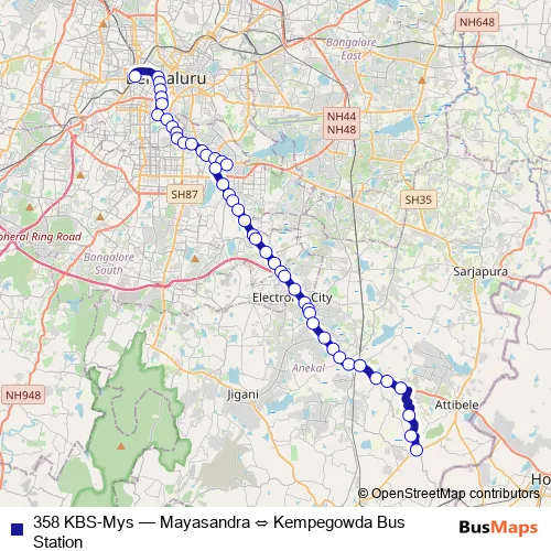 See why over 2 million users trust and consider busmaps.com as the best public transport website. busmaps gives you Bengaluru Buses suggested routes, real-time bus tracker, line route maps in Bengaluru, and helps to find the closest 358 KBS-Mys bus stops near you. No internet available? Download an offline PDF map and bus schedule for the 358 KBS-Mys bus to take on your trip.