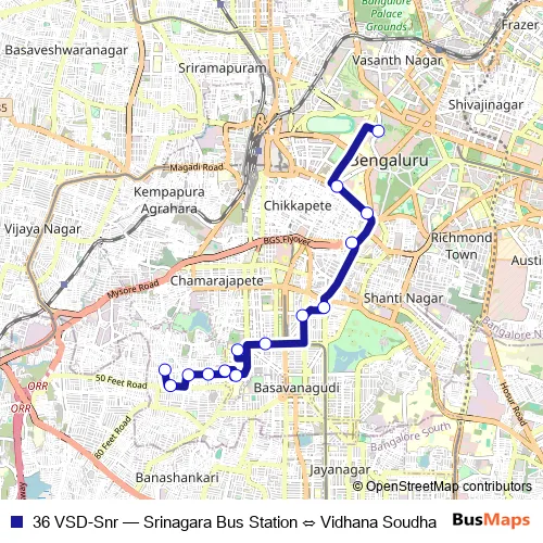 Bus 36 VSD-Snr - Srinagara Bus Station ⇔ Vidhana Soudha Schedule in Bengaluru