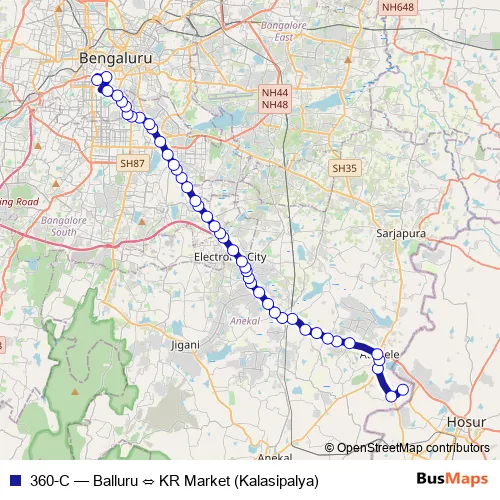 See why over 2 million users trust and consider busmaps.com as the best public transport website. busmaps gives you Bengaluru Buses suggested routes, real-time bus tracker, line route maps in Bengaluru, and helps to find the closest 360-C bus stops near you. No internet available? Download an offline PDF map and bus schedule for the 360-C bus to take on your trip.
