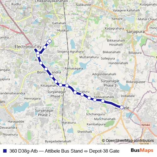 Bus 360 D38g-Atb - Attibele Bus Stand ⇔ Depot-38 Gate in Bengaluru: Stops & Timetable