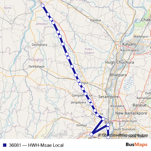 The first stop of the 36081 rail route is Howrah Jn and the last stop is Masagram. 36081 (HWH-Msae Local) is operational during everyday.