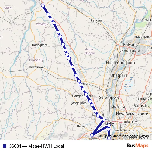 The first stop of the 36084 rail route is Masagram and the last stop is Howrah Jn. 36084 (Msae-HWH Local) is operational during everyday.