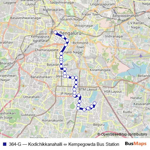 Bus 364-G - Kodichikkanahalli ⇔ Kempegowda Bus Station in Bengaluru: Stops & Timetable