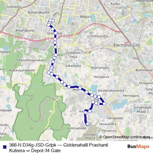 Click here to view the nearest 366-N D34g-JSD-Gdpk - Giddenahalli Prashanti Kuteera ⇔ Depot-34 Gate bus stop.
