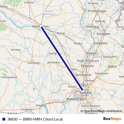 The first stop of the 36830 rail route is Bardhaman and the last stop is Howrah Jn. 36830 (BWN-HWH Chord Local) is operational during everyday.