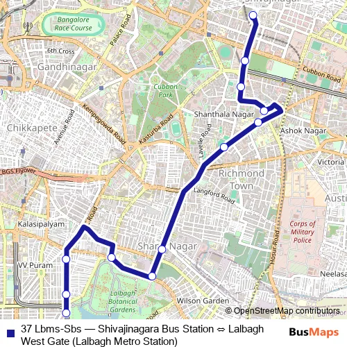 Bus 37 Lbms-Sbs - Shivajinagara Bus Station ⇔ Lalbagh West Gate (Lalbagh Metro Station): Full Schedule in Bengaluru