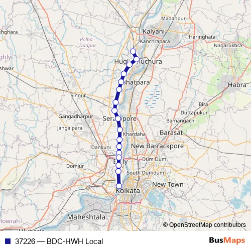 The first stop of the 37226 rail route is Bandel and the last stop is Howrah Jn. 37226 (BDC-HWH Local) is operational during everyday.