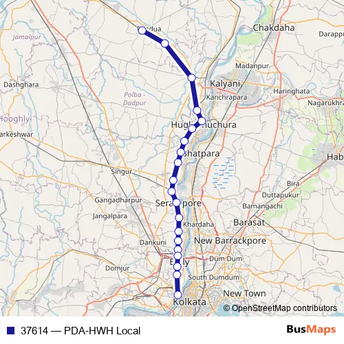 The first stop of the 37614 rail route is Pundooah and the last stop is Howrah Jn. 37614 (PDA-HWH Local) is operational during everyday.