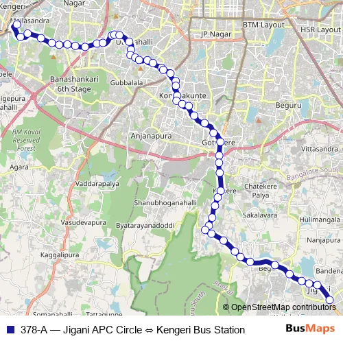Bus 378-A - Jigani APC Circle ⇔ Kengeri Bus Station: Full Schedule in Bengaluru