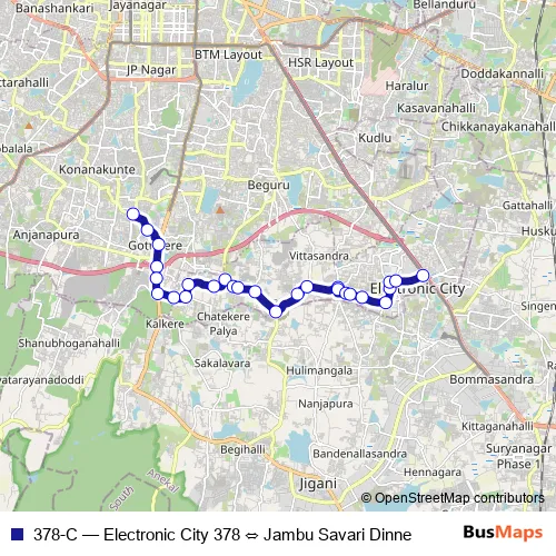 Bus 378-C - Electronic City 378 ⇔ Jambu Savari Dinne Schedule in Bengaluru
