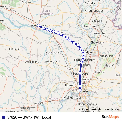 The first stop of the 37826 rail route is Bardhaman and the last stop is Howrah Jn. 37826 (BWN-HWH Local) is operational during everyday.