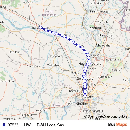 The first stop of the 37833 rail route is Howrah Jn and the last stop is Bardhaman. 37833 (HWH - BWN Local Sao) is operational during everyday.