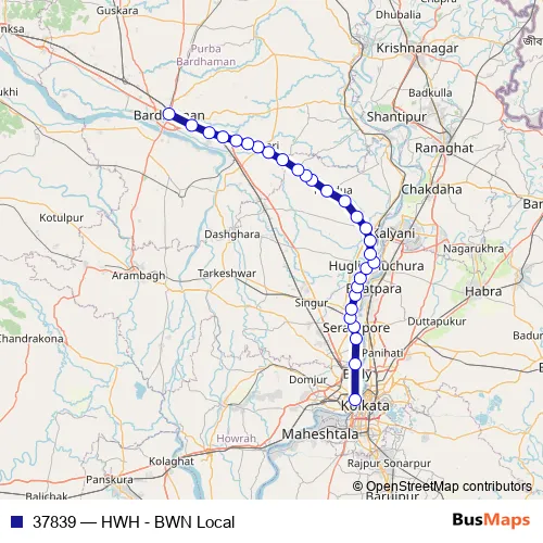 The first stop of the 37839 rail route is Howrah Jn and the last stop is Bardhaman. 37839 (HWH - BWN Local) is operational during everyday.