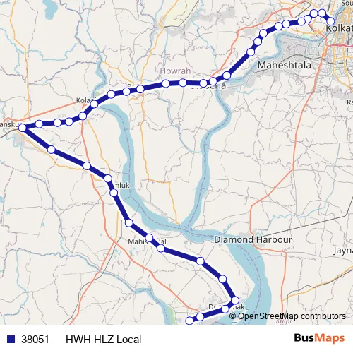 The first stop of the 38051 rail route is Howrah Jn and the last stop is Haldia. 38051 (HWH HLZ Local) is operational during everyday.