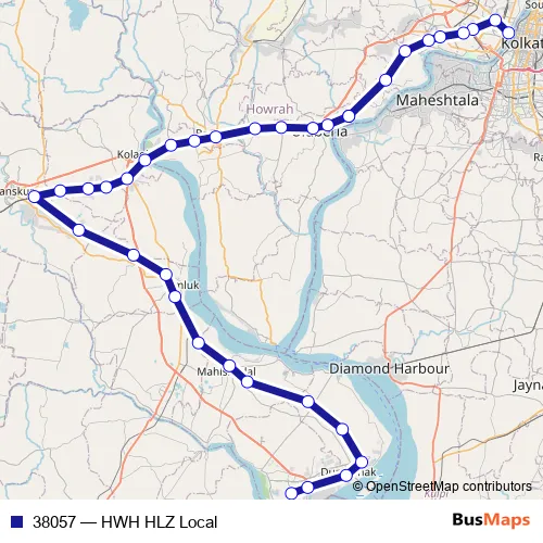 The first stop of the 38057 rail route is Howrah Jn and the last stop is Haldia. 38057 (HWH HLZ Local) is operational during everyday.