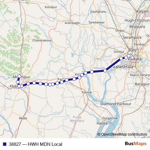The first stop of the 38827 rail route is Howrah Jn and the last stop is Midnapore. 38827 (HWH MDN Local) is operational during everyday.