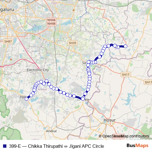Bus 399-E - Chikka Thirupathi ⇔ Jigani APC Circle in Bengaluru: Stops & Timetable