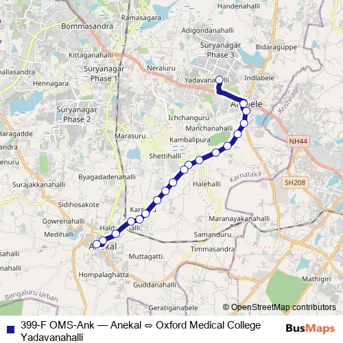 Bus 399-F OMS-Ank - Anekal ⇔ Oxford Medical College Yadavanahalli in Attibele: Stops & Timetable