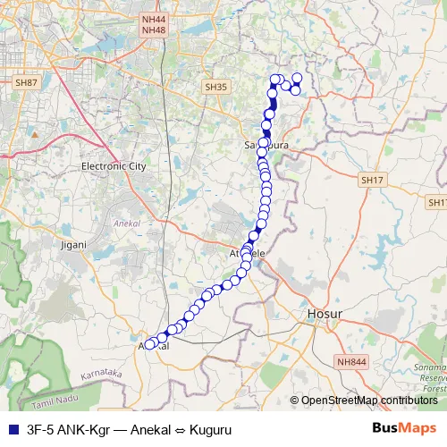 Bus 3F-5 ANK-Kgr - Anekal ⇔ Kuguru Schedule in Attibele