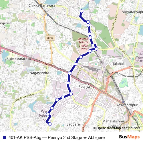 Bus 401-AK PSS-Abg - Peenya 2nd Stage ⇔ Abbigere in Bengaluru: Stops & Timetable