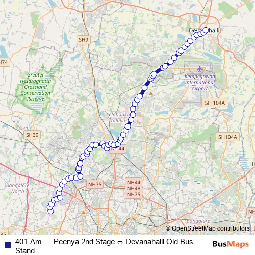 Bus 401-Am - Peenya 2nd Stage ⇔ Devanahalli Old Bus Stand in Bengaluru: Stops & Timetable