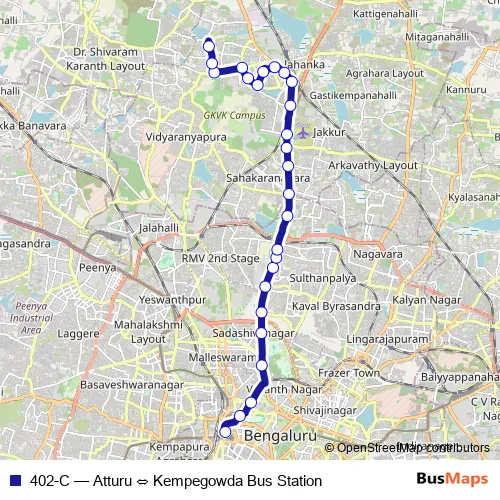 The first stop of the 402-C bus route is Kempegowda Bus Station and the last stop is Atturu. 402-C (Atturu ⇔ Kempegowda Bus Station) is operational during everyday.
