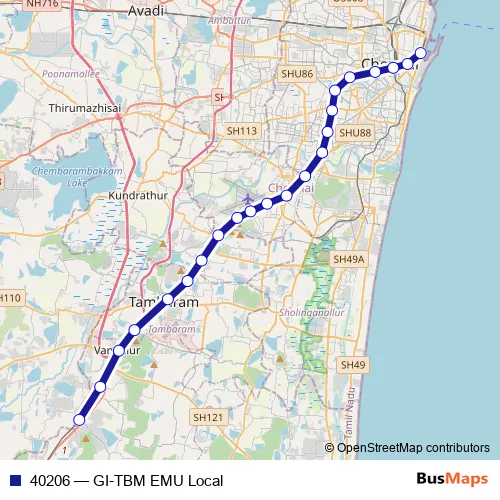 See why over 2 million users trust and consider busmaps.com as the best public transport website. busmaps gives you Chennai Rail Services suggested routes, real-time bus tracker, line route maps in Chennai, and helps to find the closest 40206 rail stops near you. No internet available? Download an offline PDF map and bus schedule for the 40206 rail to take on your trip.