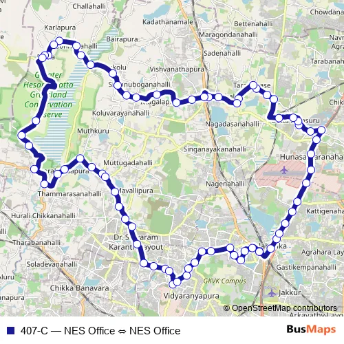 Bus 407-C - NES Office ⇔ NES Office in Bengaluru: Stops & Timetable
