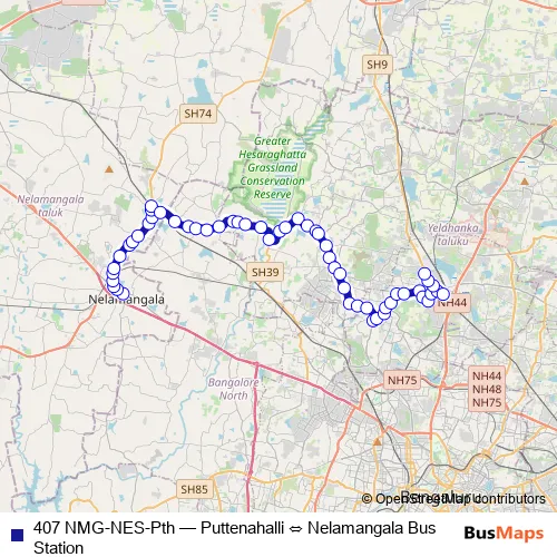 Puttenahalli. 407 NMG-NES-Pth (Puttenahalli ⇔ Nelamangala Bus Station) is operational during everyday.
