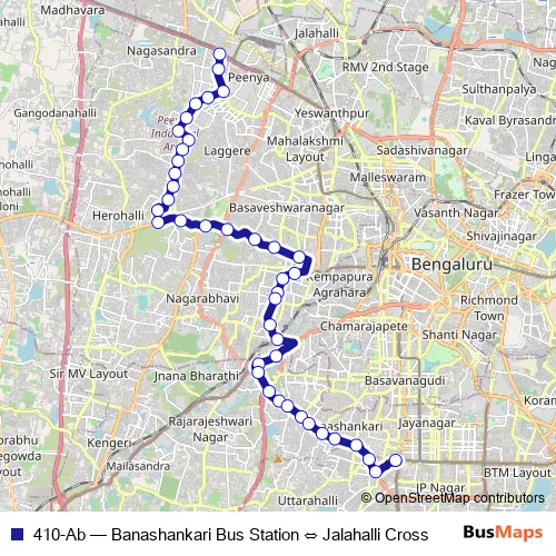Bus 410-Ab - Banashankari Bus Station ⇔ Jalahalli Cross: Full Schedule in Bengaluru