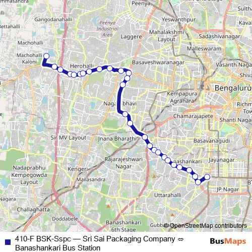 See why over 2 million users trust and consider busmaps.com as the best public transport website. busmaps gives you Bengaluru Buses suggested routes, real-time bus tracker, line route maps in Bengaluru, and helps to find the closest 410-F BSK-Sspc bus stops near you. No internet available? Download an offline PDF map and bus schedule for the 410-F BSK-Sspc bus to take on your trip.