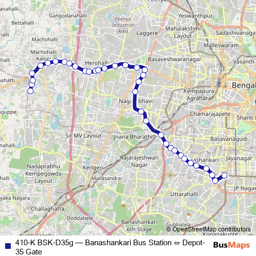 See why over 2 million users trust and consider busmaps.com as the best public transport website. busmaps gives you Bengaluru Buses suggested routes, real-time bus tracker, line route maps in Bengaluru, and helps to find the closest 410-K BSK-D35g bus stops near you. No internet available? Download an offline PDF map and bus schedule for the 410-K BSK-D35g bus to take on your trip.