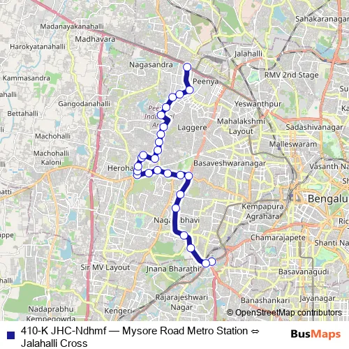 Click here to view the nearest 410-K JHC-Ndhmf - Mysore Road Metro Station ⇔ Jalahalli Cross bus stop.