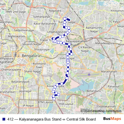 Click here to view the nearest 412 - Kalyananagara Bus Stand ⇔ Central Silk Board bus stop.